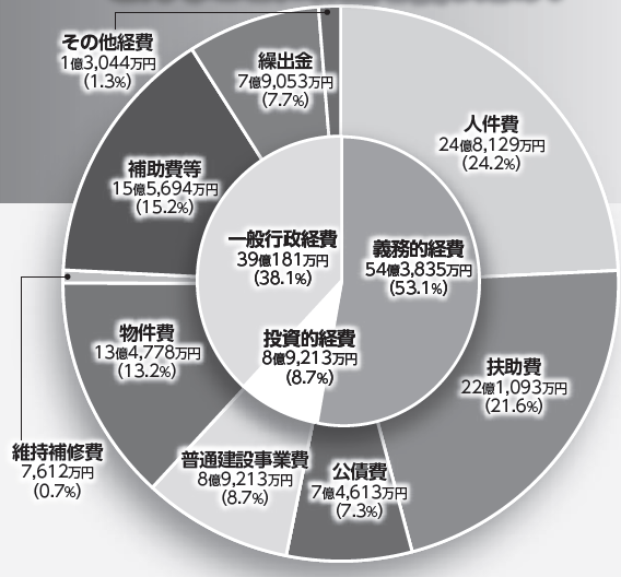・普通建設事業費 道路や公共施設の整備等、将来への投資費用です。