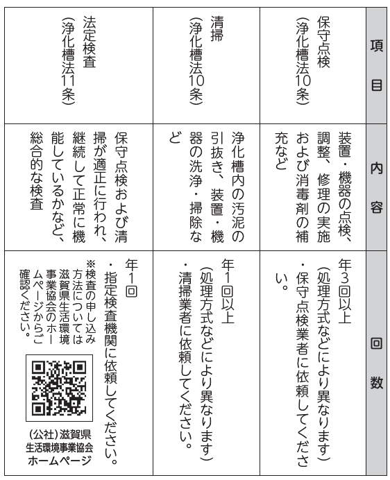 ◆浄化槽の保守点検・清掃・法定検査が法律で義務付けられています!