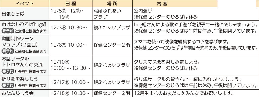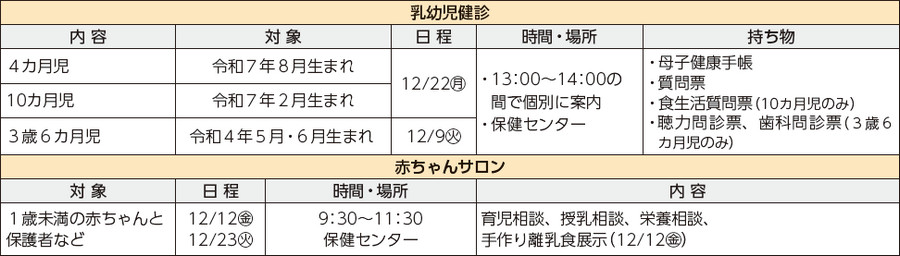 ※12/23(火)の赤ちゃんサロンはいつもと曜日が異なりますので、お間違えの無いようご注意ください。