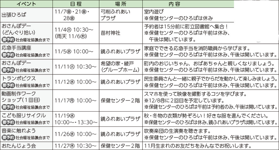対象:町内在住の0歳児~未就園児と保護者