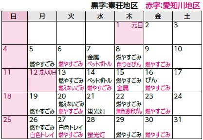 ■1月のゴミカレンダー