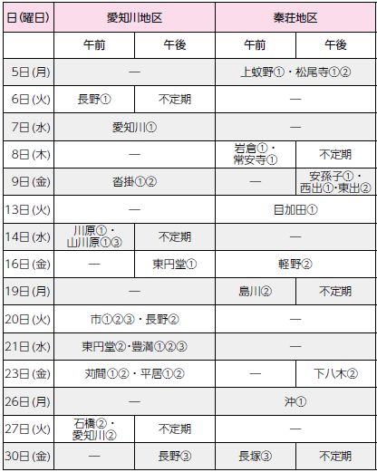 ※曜日、時間は変更になることがありますのでご了承ください。