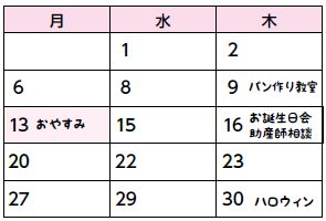 ★16日(木)午前中…お誕生日会・助産師相談