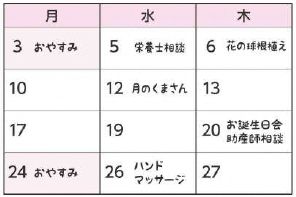 ▽5日(水)10:00~…栄養士さんによるミニ講座・個別相談※参加費50円