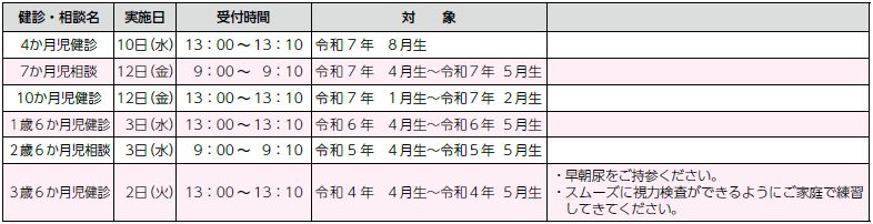 ※各健診の持ち物は、愛荘町HPに掲載の「健康カレンダー」よりご確認ください。