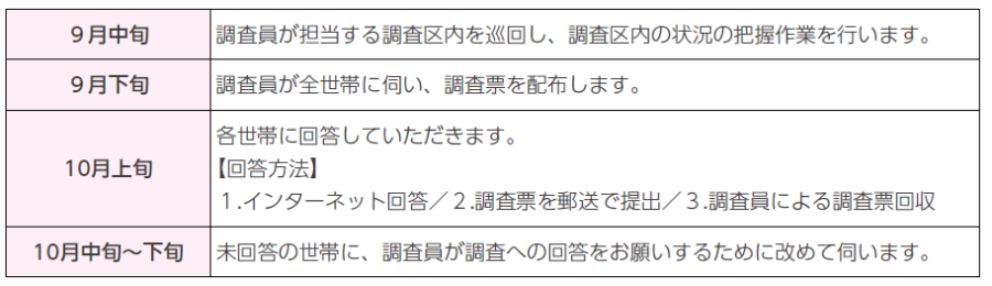 国勢調査は、令和7年9月中旬から10月下旬までにかけて実施されます。
