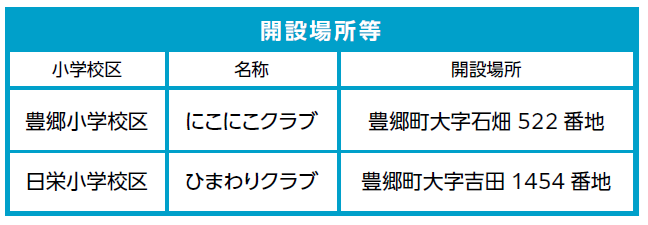 申請書等配布・受付場所:教育委員会事務局(役場2階)、にこにこクラブ、ひまわりクラブ