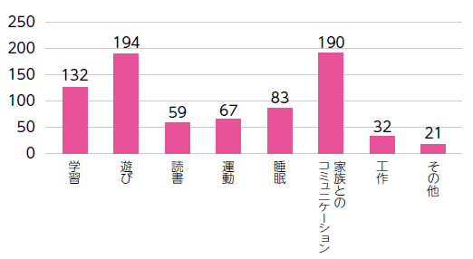 普段メディアを使っている時間に何をするか、それぞれに工夫してくれました。「遊び」や「家族とのコミュニケーション」「学習」など、普段とは違う時間の過ごし方に「楽しかった。」という感想もたくさん見られました。