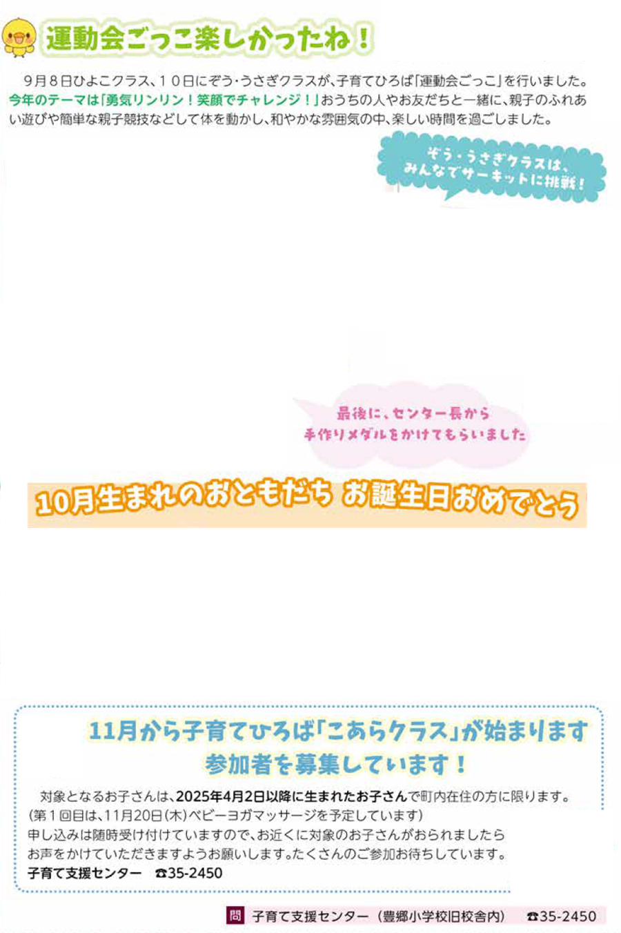 子育て 8月・9月の子育て支援センター 12/31 前の記事 次の記事 発行日 : 2025年10月10日 自治体名 : 滋賀県豊郷町 広報紙名 : 広報とよさと 2025年10月号 Tweet シェアする し尿収集カレンダー(11月分) くらしの中に図書館を