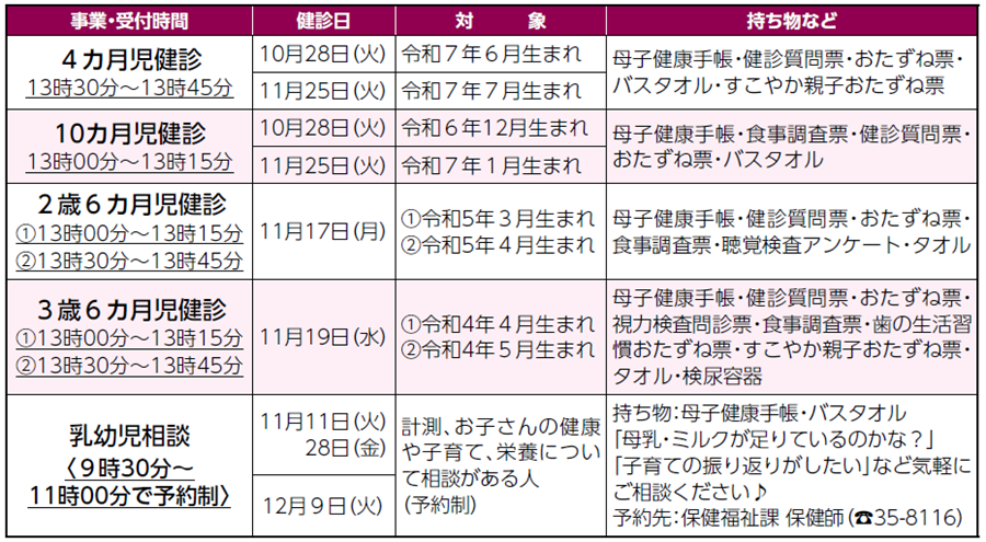※日程変更がない場合、通知は4カ月児健診のみです。