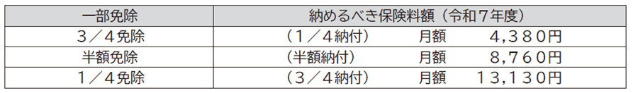 国民年金保険料の免除申請をされた方のうち、一部免除(1/4免除・半額免除・3/4免除)の場合、減額後の保険料を納付しないと一部免除が無効となり、未納期間となりますので、必ず減額後の保険料を納付してください。納め忘れがあると「万が一」のことがあっても、障害基礎年金や遺族基礎年金を受給できない場合がありますので、ご注意ください。