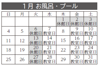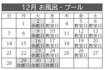 12月は1日、12日、24日、28日(最終営業日)(プール/香良の湯共通)