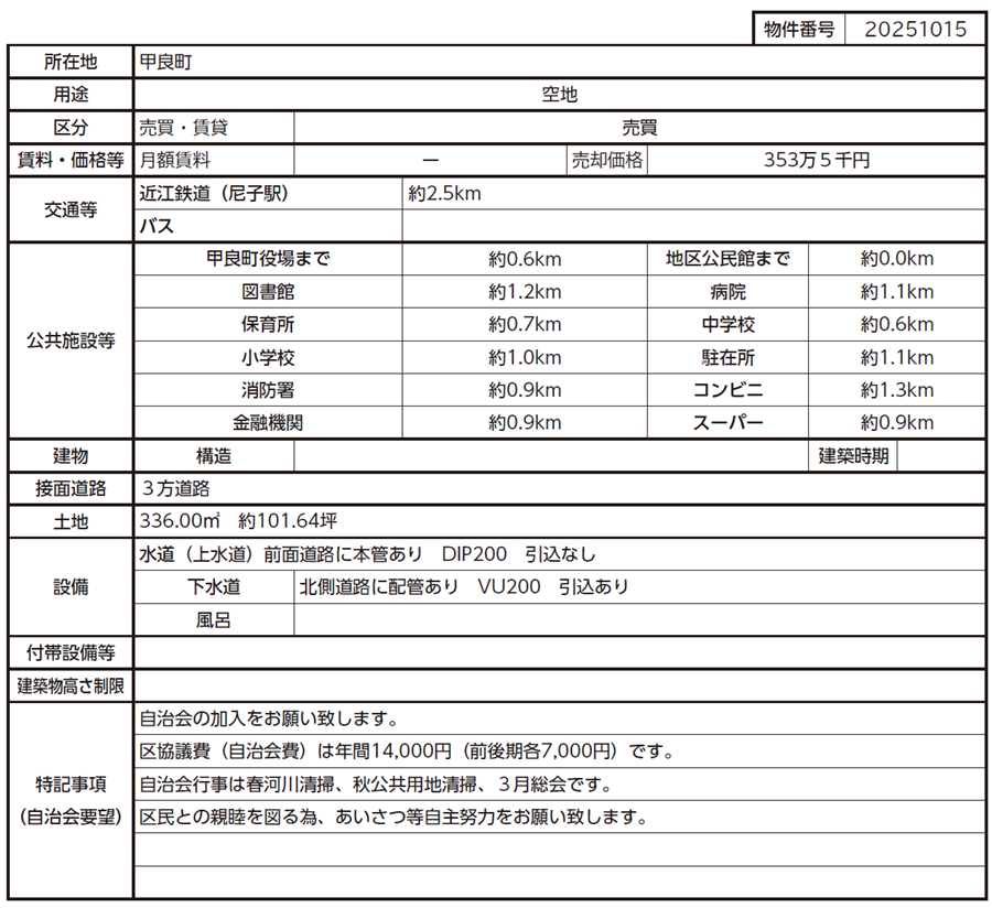 当町の空家・空地バンク情報登録制度では物件のある地区に最初に回覧させていただいておりますので、広報誌発行時点で売却契約が成立している場合があります。