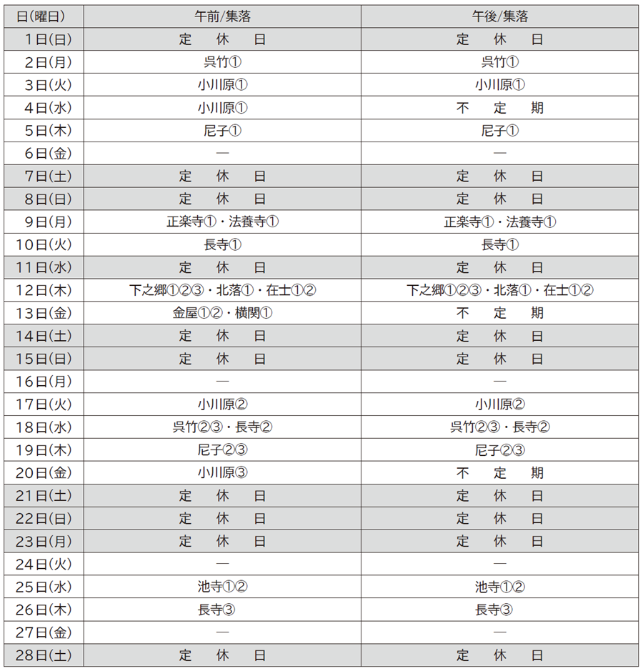 なお、収集予定のない集落等については、翌月以降の収集となります。