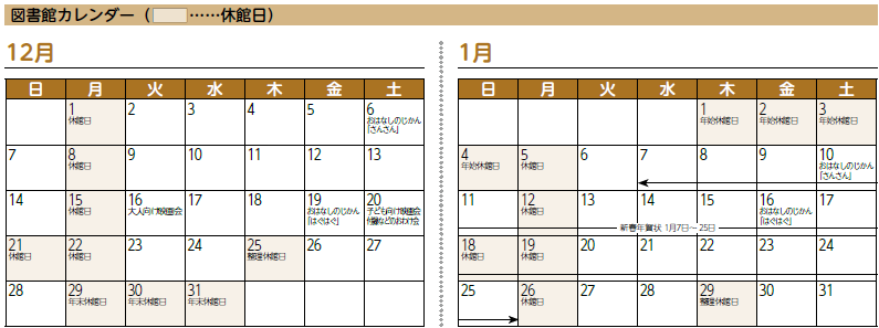 ☆年末年始の休館は、2025年12月29日(月)~2026年1月5日(月)です。