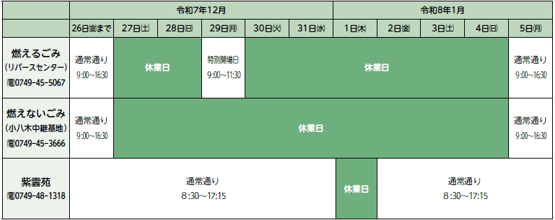 くらし 年末年始の搬入受付のお知らせ 26/38 前の記事 次の記事 発行日 : 2025年12月05日 自治体名 : 滋賀県多賀町 広報紙名 : 広報たが 2025年12月号 ※燃えないごみの搬入には、許可証が必要となりますので、産業環境課で許可証の交付を受けてください。 →産業環境課(環境) 【有】2-2012【電話】0749-48-8118【FAX】0749-48-0594 Tweet シェアする 年末年始の救急歯科診療について 年末のし尿くみ取りのお知らせ