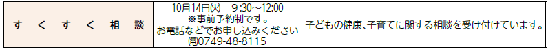 ・健診日以外でも、お子さんの身長・体重測定やご相談を伺います。ご希望の方はお電話ください。【電話】0749-48-8115