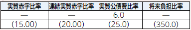 ※実質赤字額または連結実質赤字額がない場合はおよび将来負担比率が算定されない場合は、「—」を記載しています。