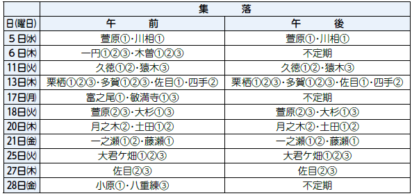 なお、収集予定のない集落等については、翌月以降の収集となります。
