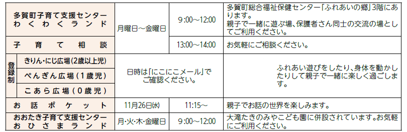 ※広場の登録を希望される方は、多賀町子ども・家庭応援センターへお申し込みください。広場登録用紙は、子育て支援センター、多賀町総合福祉保健センター「ふれあいの郷」入口にあります。