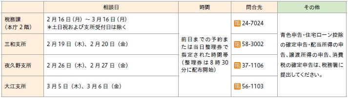 *当日の申告相談は、予約に空きがあった場合のみ整理券を配布し実施します。