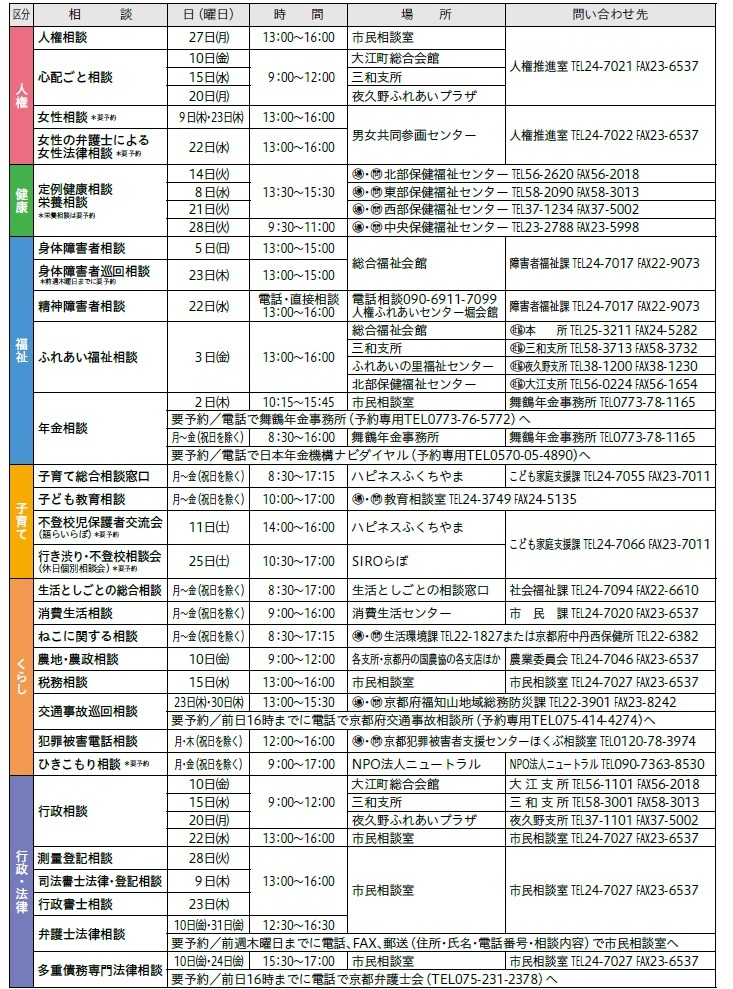 くらし 10月・相談あんない 29/37 前の記事 次の記事 発行日 : 2025年09月04日 自治体名 : 京都府福知山市 広報紙名 : 広報ふくちやま 2025年9月号 *いずれも無料・秘密厳守。特記した相談以外は、事前の申し込みは不要です。 *申込日が祝日の場合は、その前日まで。 略記号の説明:場…場所、問…問い合わせ先、社協…社会福祉協議会 Tweet シェアする LINE公式アカウントで福知山の情報を配信中! ミミちゃんとコロちゃんの図書館情報局