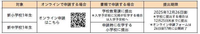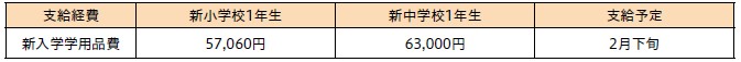 2026年4月に小学校・中学校の新1年生として入学予定の児童生徒の保護者で、下記の要件に該当する人には、新入学学用品費を入学前に支給します。
