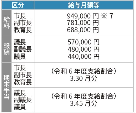 ※7 市長の給料は、表記の金額から3割減額