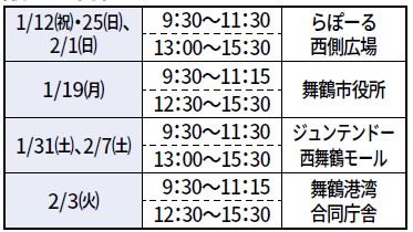 1/25(日)、2/8(日)まいづる薬局国立前(倉梯町、【電話】65-1188)