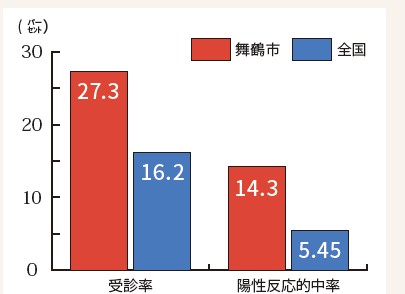 舞鶴市の乳がん検診の受診率は、全国平均を大きく上回っています。また、その中でも「要精密検査」と判定された人のうち、実際にがんが発見される割合(陽性反応的中率)は、全国平均が5・45パーセントであるのに対して、舞鶴市は14・3パーセントと高い割合になっており、がんでない人への不要な精密検査のリスクを減らし、正確にがんを見つけ出すことができているということです。