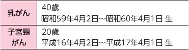 対象:4月20日現在、市に住民登録のある次の条件に該当する女性