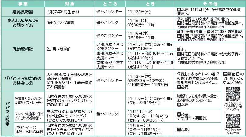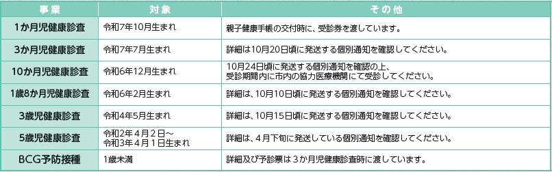 予防接種については、市ホームページまたは子育て情報誌を確認してください。