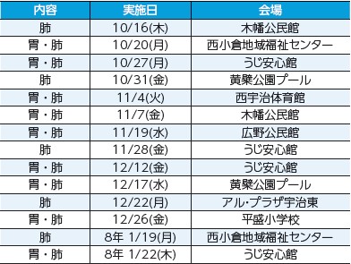 申込み:電話か同課窓口へ(胃がん検診は、実施日の2週間前まで)。