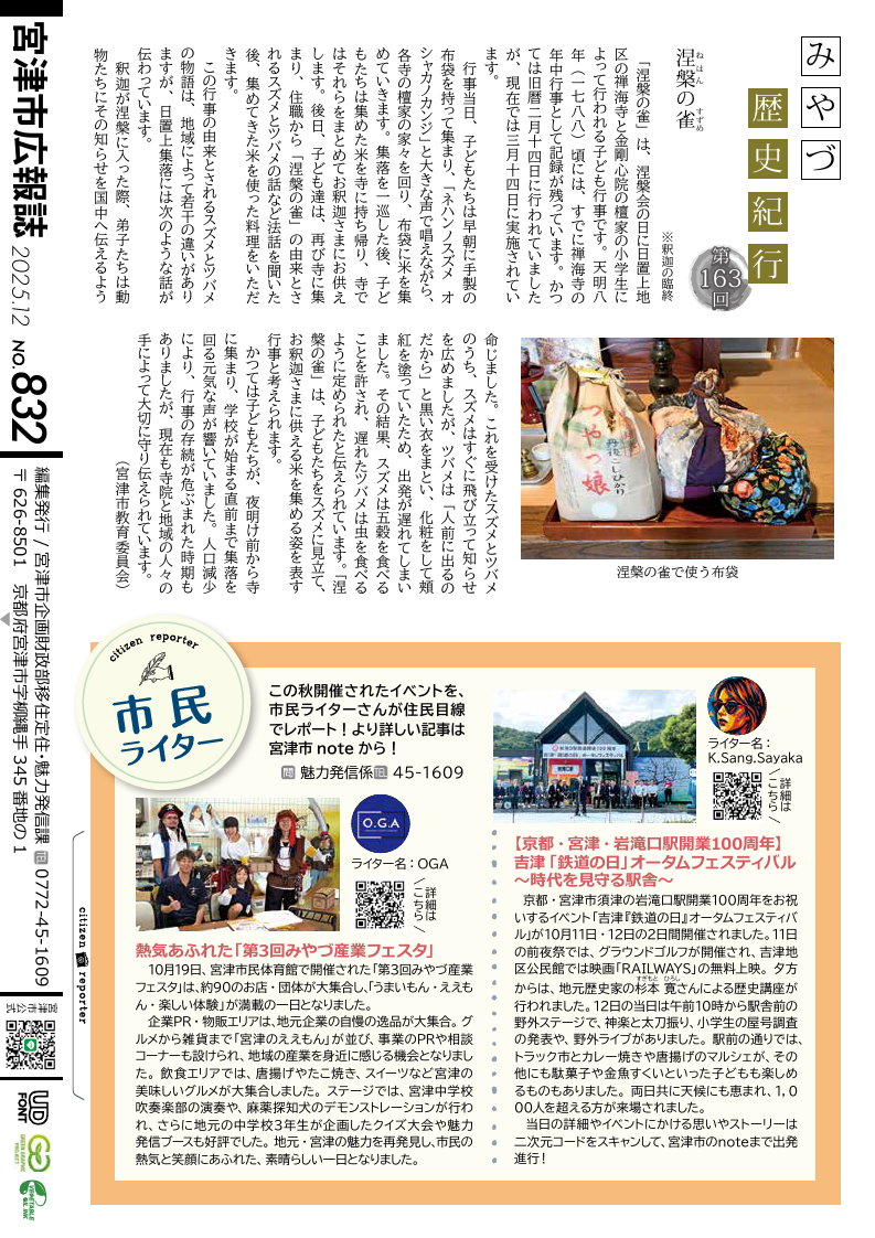 文化 広報みやづ 令和7年12月号 P.28 28/28 前の記事 発行日 : 2025年12月19日 自治体名 : 京都府宮津市 広報紙名 : 広報みやづ 令和7年12月号 Tweet シェアする 広報みやづ 令和7年12月号 P.27