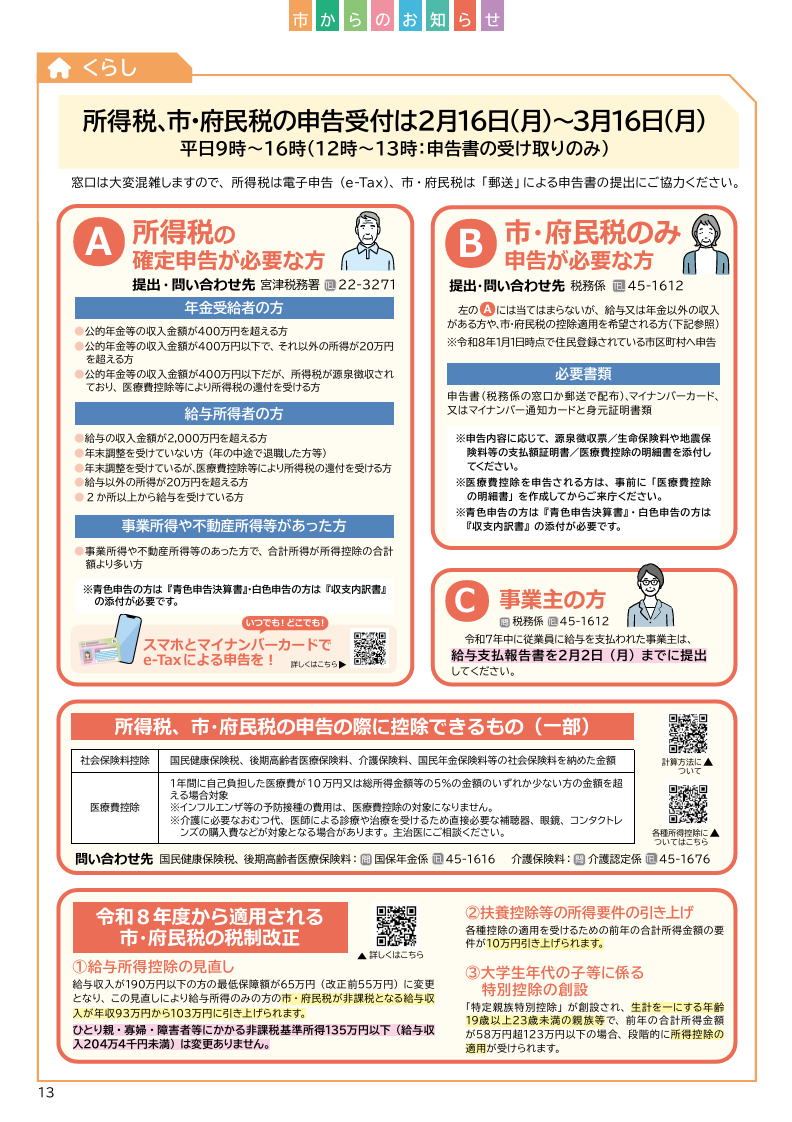 くらし 広報みやづ 令和8年1月号 P.13 12/23 前の記事 次の記事 発行日 : 2026年01月20日 自治体名 : 京都府宮津市 広報紙名 : 広報みやづ 令和8年1月号 Tweet シェアする 広報みやづ 令和8年1月号 P.12 広報みやづ 令和8年1月号 P.14