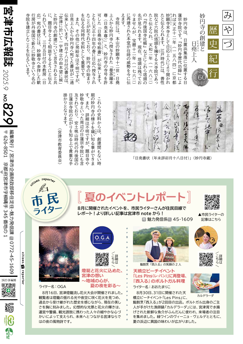 文化 広報みやづ 令和7年9月号 P.28 28/28 前の記事 発行日 : 2025年09月19日 自治体名 : 京都府宮津市 広報紙名 : 広報みやづ 令和7年9月号 Tweet シェアする 広報みやづ 令和7年9月号 P.27