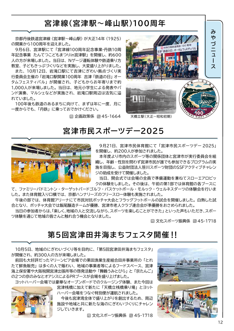 くらし 広報みやづ 令和7年11月号 P.12 11/27 前の記事 次の記事 発行日 : 2025年11月20日 自治体名 : 京都府宮津市 広報紙名 : 広報みやづ 令和7年11月号 Tweet シェアする 広報みやづ 令和7年11月号 P.10-11 広報みやづ 令和7年11月号 P.13