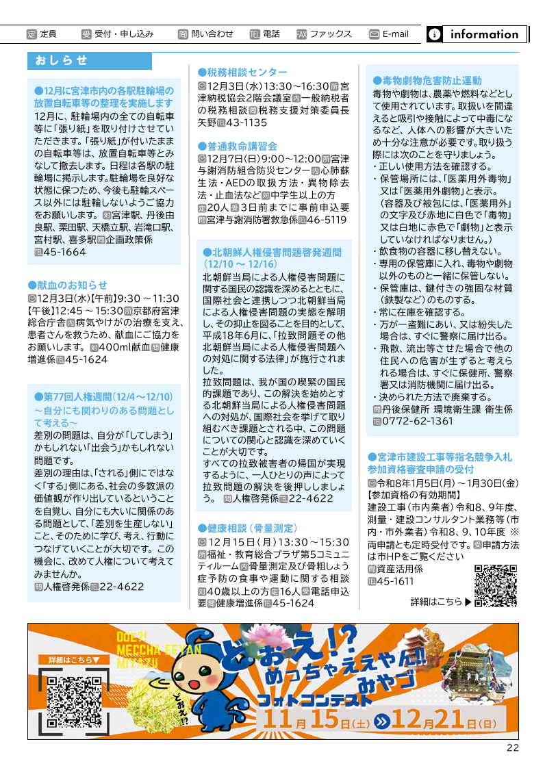 くらし 広報みやづ 令和7年11月号 P.22 21/27 前の記事 次の記事 発行日 : 2025年11月20日 自治体名 : 京都府宮津市 広報紙名 : 広報みやづ 令和7年11月号 Tweet シェアする 広報みやづ 令和7年11月号 P.21 広報みやづ 令和7年11月号 P.23