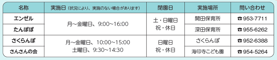 問合せ:子育て支援課保育・幼児教育係