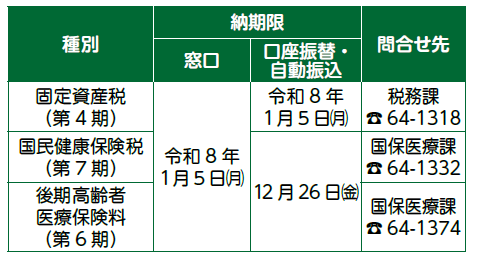 ・口座振替・自動払込の人は、納期限の前日までに登録口座の預貯金残高を確認してください。