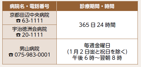 急な病気やけがで、救急車を呼ぶべきか判断に迷ったときは、看護師などからアドバイスを受けられる電話相談窓口「救急安心センターきょうと」を活用してください。