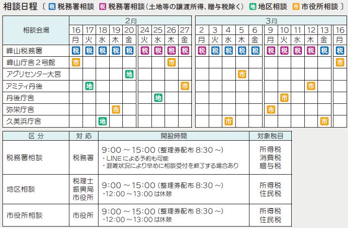 ※地区相談は、峰山税務署、近畿税理士会峰山支部、峰山納税協会、丹後広域振興局、本市の共催により開催します。