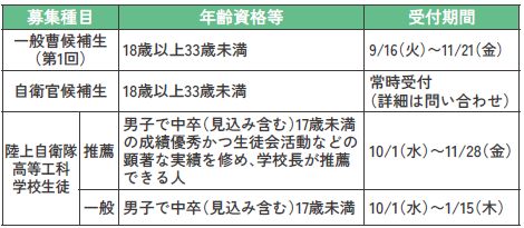 ※募集種目や試験日程並びに自衛隊の説明を希望される人は、気軽にお問い合わせください。