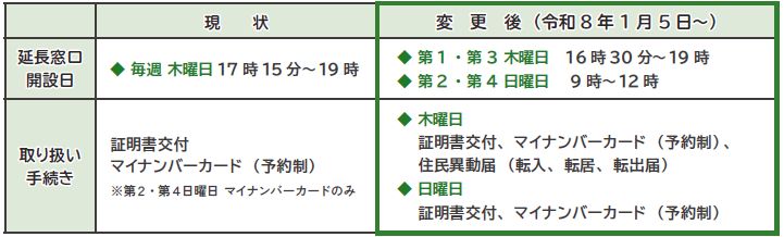 ■延長窓口開設日・取り扱い手続きの拡充について(峰山庁舎)新たに日曜窓口を開設!