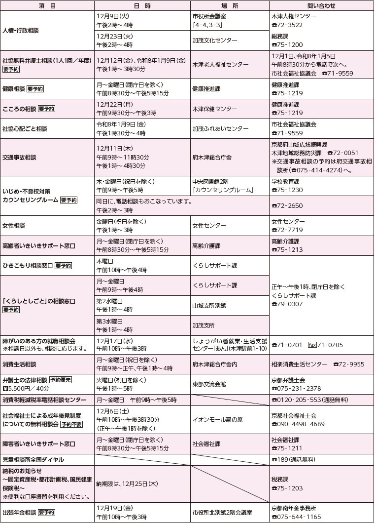 くらし 各種相談日 42/51 前の記事 次の記事 発行日 : 2025年12月01日 自治体名 : 京都府木津川市 広報紙名 : 【京都府木津川市】広報きづがわ 2025年12月号 Tweet シェアする 広報きづがわの感想をお聞かせください まちの話題