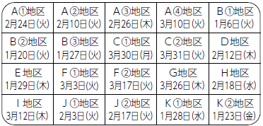 A地区(2)(第2・4月曜) 1月12日・26日 2月9日