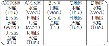★K地区(第3・5金曜) 1月16日・30日 2月13日