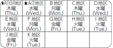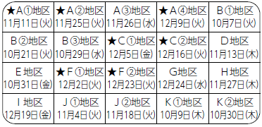 ★A地区(3)(4)(第1・3火曜) 10月7日・21日 11月4日