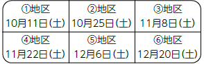 A地区(第2・4水曜) 10月8日・22日 11月12日