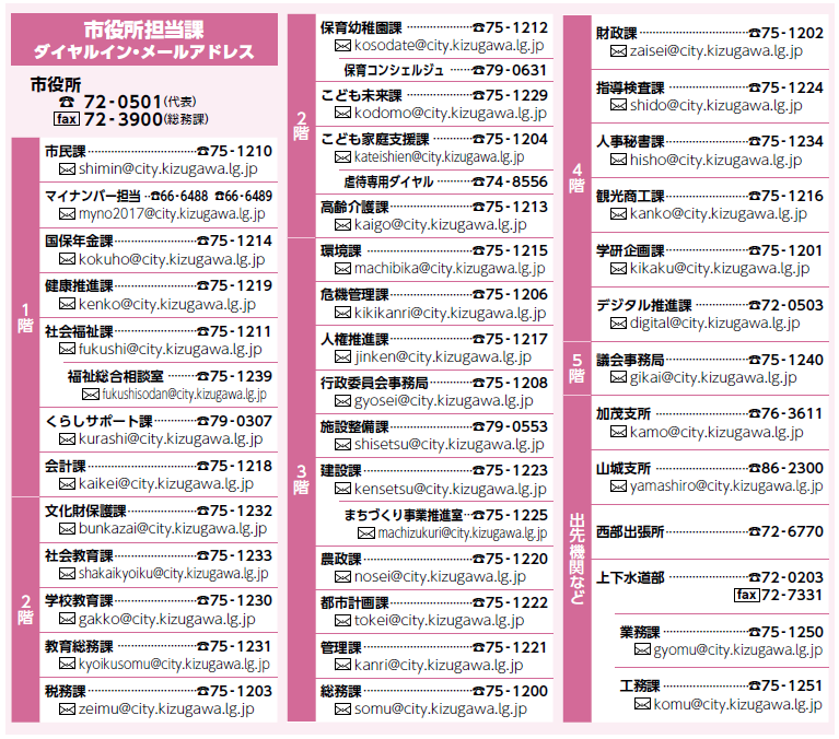 「広報きづがわ」は、市内の区・自治会などに協力いただき、毎月5日までに各世帯に配布しています。また、目の不自由な方には、CDで聞ける「声の広報」を図書館などの公共施設に用意しています。詳しいことや、広報が届いていない場合は学研企画課へ連絡ください。